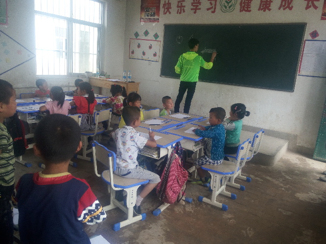 ????我們的支教大學(xué)生們有教英語的,有教數(shù)學(xué)的,有教美術(shù)的,有教音樂的,有教體育的,有教禮儀的等等。我們都有只一個目的,就是為了讓孩子們開拓視野,健康快樂的成長。