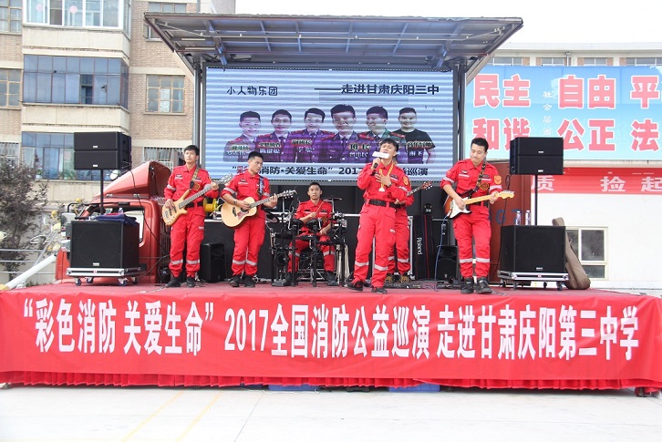 ????????8月31日,市消防支隊特邀“彩色消防關(guān)愛生命”2017全國公益消防巡演隊走進慶陽三中,為學(xué)生們上了一堂別開生面的消防安全課程。
