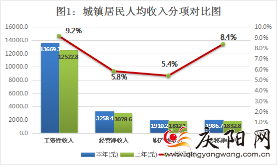 城鎮(zhèn)居民人均收入分項對比圖