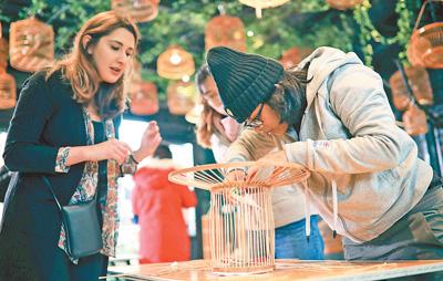 2月7日,在貴州省黔東南苗族侗族自治州丹寨縣萬達小鎮(zhèn)非遺體驗館,留學生們在向非遺傳承人學習苗族鳥籠制作。人民視覺
