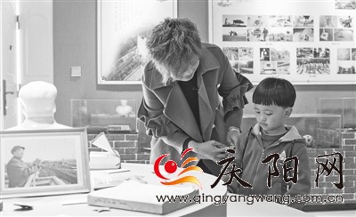 五蛟鎮(zhèn)上城壕村史館里,一位母親向孩子介紹老物件。隴東報/掌中慶陽記者陳飛