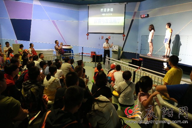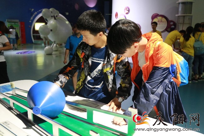 游學(xué)團在中國科學(xué)技術(shù)館探索與發(fā)現(xiàn)展廳里做實驗