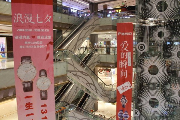 臨近“七夕”,西峰城區(qū)的各大商場紛紛打起了“浪漫牌”,促銷氛圍濃厚。