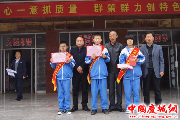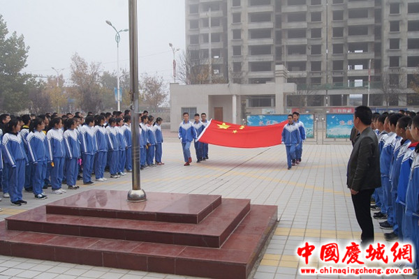 儀式由教務(wù)主任主持,共有四項議程。首先組織國旗隊隊員升旗,全體師生齊唱國歌、行注目禮;第二項,宣讀學(xué)?!蛾P(guān)于授予曹瑞祥、樊卓欣、朱阿嬌“法制勇敢好少年”的表彰決定》《關(guān)于向“法制勇敢好少年”曹瑞樣、樊卓欣、朱阿嬌學(xué)習(xí)的倡議書》及慶城縣公安局對三名同學(xué)的表揚信;第三項,由八年級學(xué)生代表陳柯同學(xué)進行題為《學(xué)習(xí),我們的職責》的國旗下演講;最后,學(xué)校負責人做了總結(jié)講話,要求全體老師要根據(jù)縣局下發(fā)的《慶城縣2018年秋季初中期中考試安排》,安排好課程進度,組織好考前復(fù)習(xí),同時,寫好個人政治學(xué)習(xí)筆記和業(yè)務(wù)學(xué)習(xí)筆記,強化師德師風(fēng)建設(shè),爭做“四有”好老師。