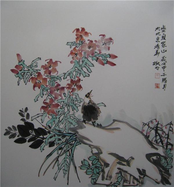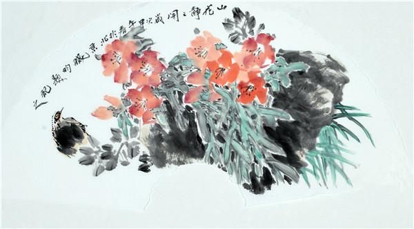 2014年花鳥畫《家鄉(xiāng)的山丹丹紅了》入選山東雙年展。