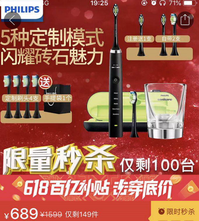 6月9日當(dāng)天,在平臺618“百億現(xiàn)金補(bǔ)貼”的帶動下,包括耐克、阿迪達(dá)斯等品牌在內(nèi)的運(yùn)動專場,銷量同比增長超過350%,日環(huán)比增長接近52%;美妝個(gè)護(hù)類目整體同比增長超過260%,飛利浦電動牙刷、ReFa瘦臉儀成為明星產(chǎn)品。