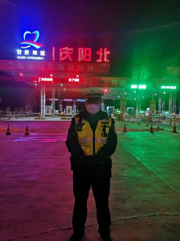楊文杰在慶陽(yáng)北高速出口執(zhí)勤(楊文杰提供)