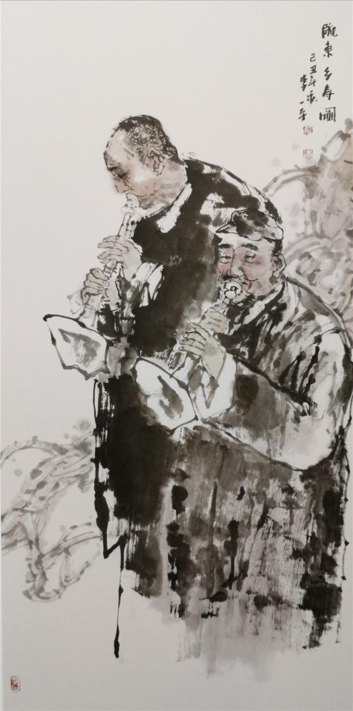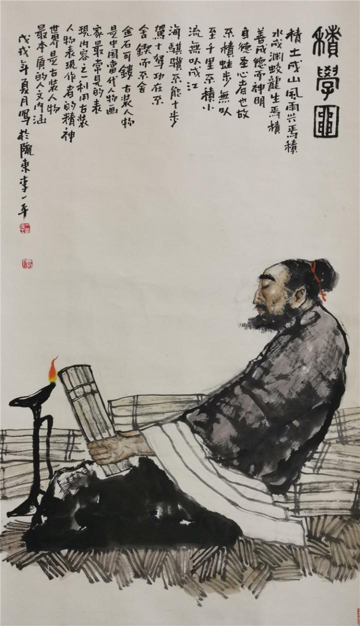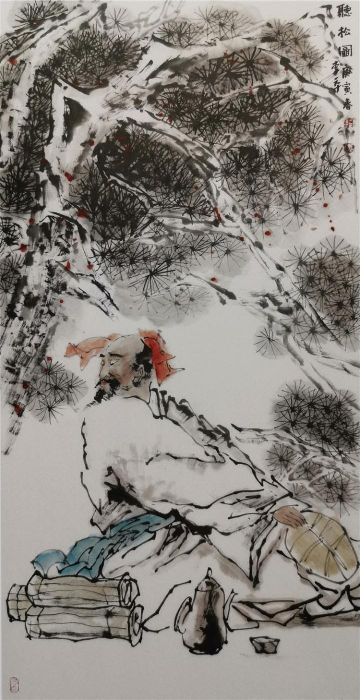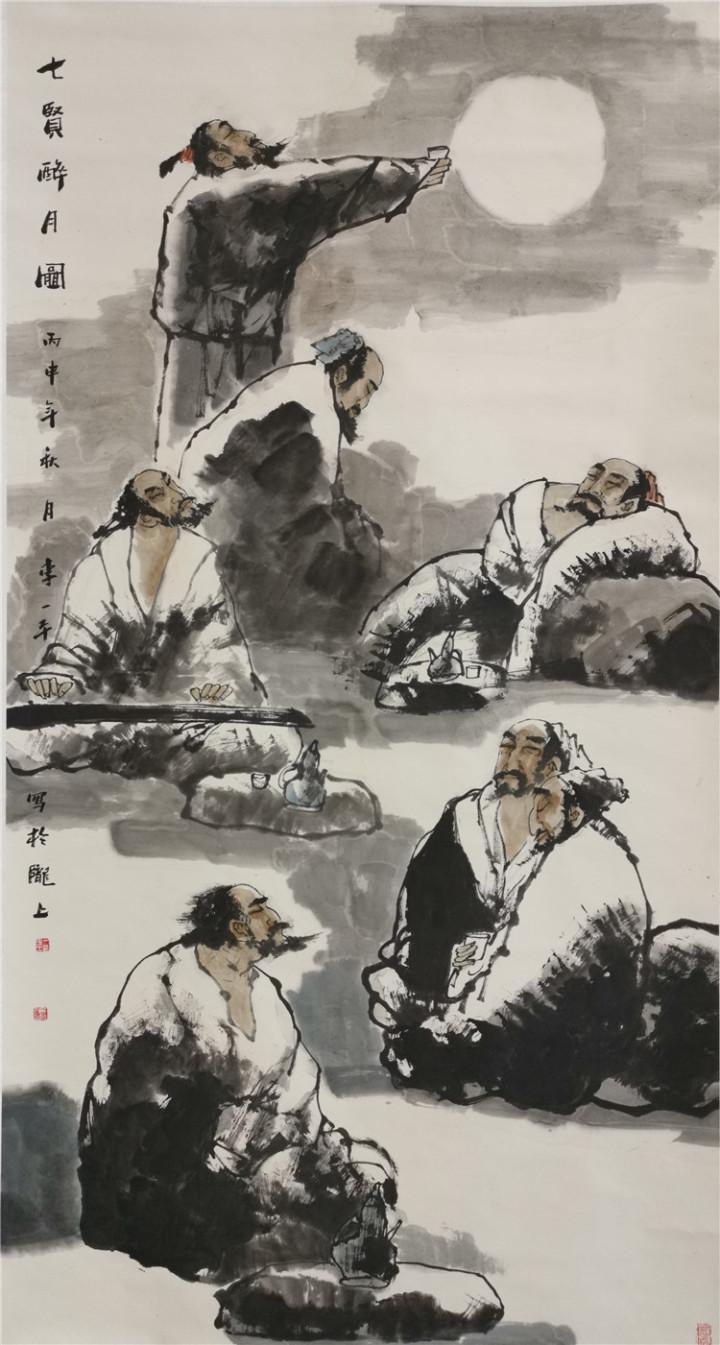 ??????? 中國畫中的人物畫歷史悠久。隨著社會的進步和中國傳統(tǒng)文化的不斷發(fā)展變化,人們對繪畫認知和追求的不斷提高,中國人物畫的理論和實踐日趨完善。特別是現(xiàn)代人物畫在繼承傳統(tǒng)的基礎上,與現(xiàn)代人們的生活實際緊密結合起來,突出表現(xiàn)現(xiàn)代人們的精神風貌與社會生活現(xiàn)狀。但是,從繪畫理論層面來看,仍然與南朝謝赫關于中國畫的“六法論”一脈相承。“六法”的基本內(nèi)容是氣韻生動、經(jīng)營位置、骨法用筆、應物象形、隨宜類賦彩、傳移模寫。古人評價繪畫水平高低,主要依據(jù)這六法,也就是這六條品評標準。當代人物畫的評價體系,也超不出六法的基本范疇。例如,我們欣賞一件人物畫作品,首先要從整體效果入手,就是要求畫面氣韻生動、視覺沖擊力要強。它是一個有機整體,每個局部互相牽連,相互照應。欣賞一件好的美術作品,一看讓人眼前一亮,第一眼很打動人,活靈活現(xiàn),生動傳神,這件作品就是一件好作品。所以一件作品的評價,氣韻生動是第一位的。其次,好的作品還要耐看,再看它的構圖章法布局,也就是六法中的經(jīng)營位置,要求畫面主題突出,布局合理,點線面組織得當,黑白灰調(diào)子和諧。畫面的節(jié)奏感、韻律感都處理的得當。再深入地看,看畫面的筆墨效果,注重筆墨的功力和線條的質(zhì)量,就是強調(diào)骨法用筆。至于應物象形,傳移模寫、隨類賦彩,也是每件成功作品必不可少的內(nèi)容。就是要看作品抓形準確、色彩合理,有生活基礎,構成一個有機的整體。