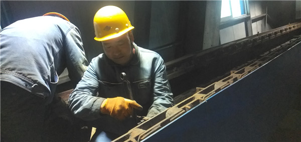 張興濤在東區(qū)熱源廠檢修刮板除灰機(jī)鏈條。