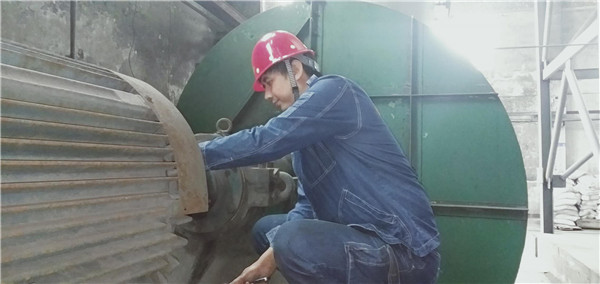 周建祥在檢修引風(fēng)機(jī)。