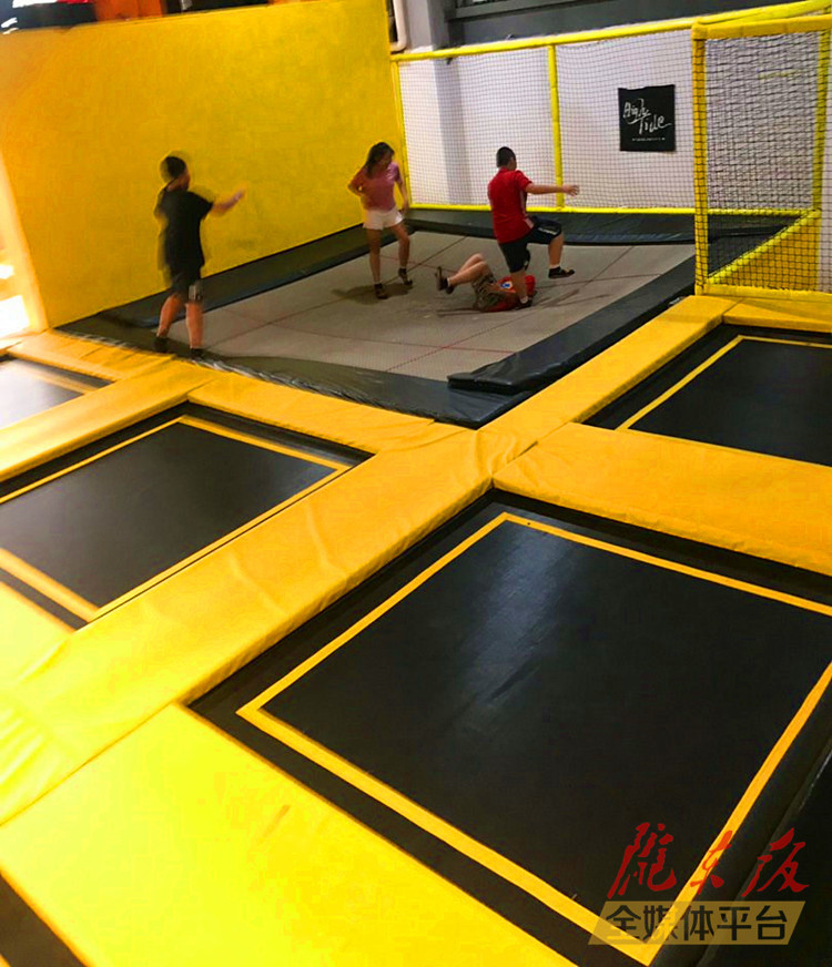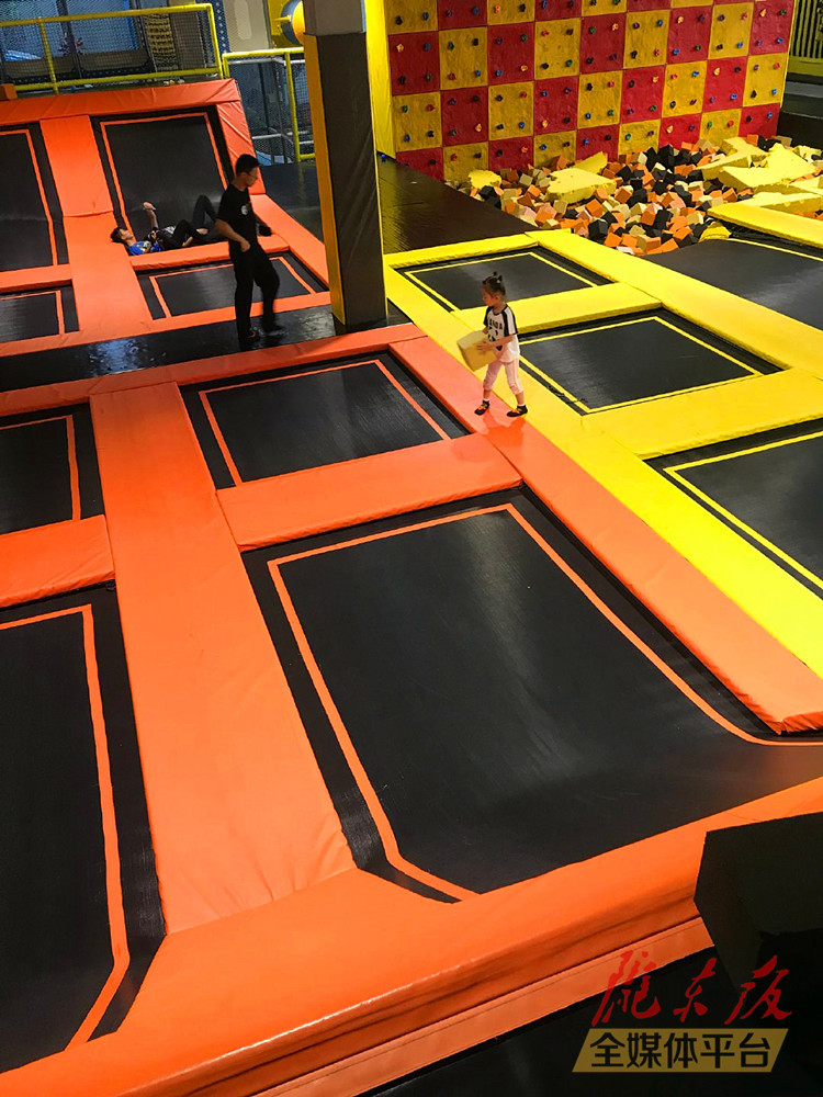 ????受到家長和孩子青睞的,不只有室外蹦床,還有室內(nèi)蹦床。相比于室外蹦床,室內(nèi)蹦床沒有安全繩束縛,似乎更受孩子們歡迎。記者在城區(qū)某蹦床俱樂部看到,幾個(gè)孩子在不同蹦床區(qū)域來回跳躍,甚至追逐、打鬧,有些孩子在蹦床上跳躍過程中,不慎摔倒,有些孩子還做起了跪彈、坐彈等有些難度的蹦床動(dòng)作。但旁邊的工作人員對(duì)這些孩子的危險(xiǎn)操作并未進(jìn)行制止。在蹦床圍欄外陪護(hù)孩子的家長孫先生擔(dān)憂的說:“下落起跳幅度這么大,看得人心驚肉跳。”孫先生表示,這樣激烈的體驗(yàn)項(xiàng)目讓他對(duì)孩子的安全時(shí)刻提心吊膽。