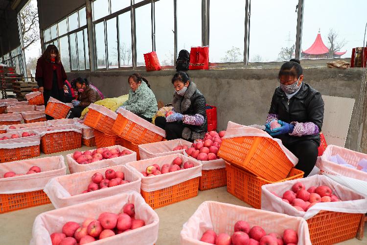 合水縣新興有機(jī)農(nóng)產(chǎn)品農(nóng)民專業(yè)合作社內(nèi),來自四川的客商正在分揀裝箱蘋果。
