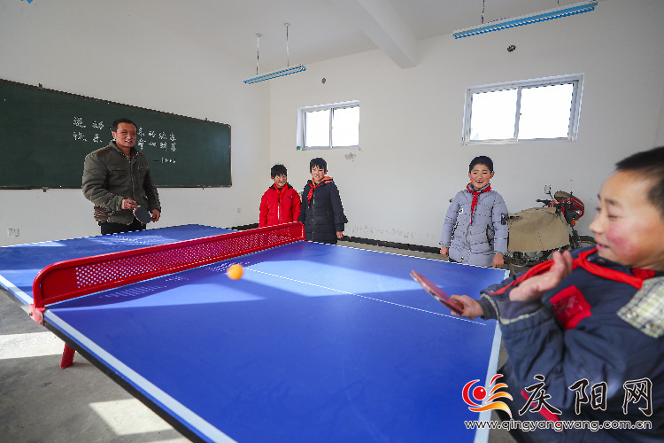 打兵乓球,是老師林亞東和孩子們最喜愛的課間活動(dòng)。