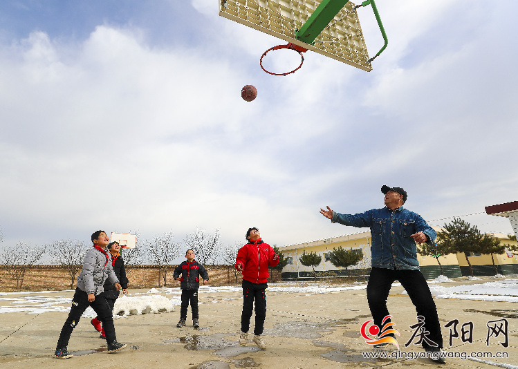 天氣晴朗的時(shí)候,教師王志斌喜歡教孩子們打籃球。