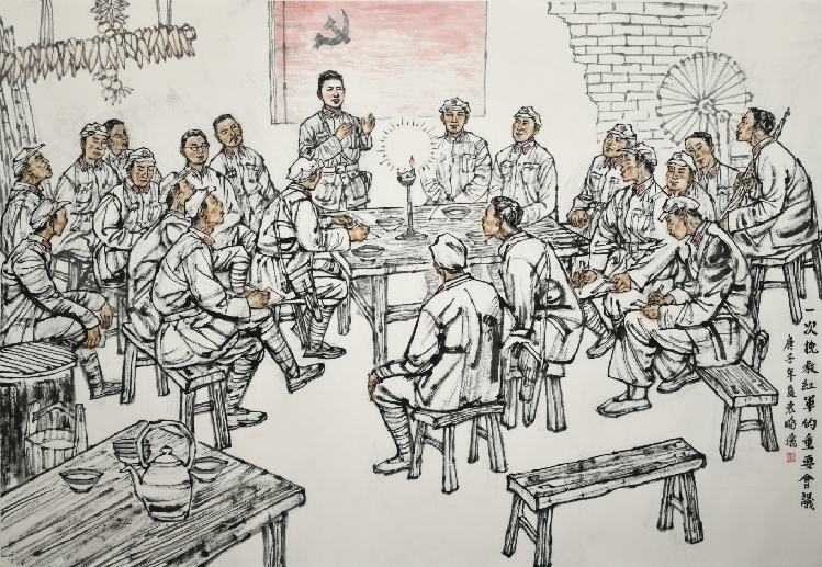 陳家坡會議指航向。袁鵬飛?繪