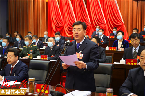 在熱烈的掌聲中,市長盧小亨走上發(fā)言席,代表市政府向大會作《政府工作報告》。