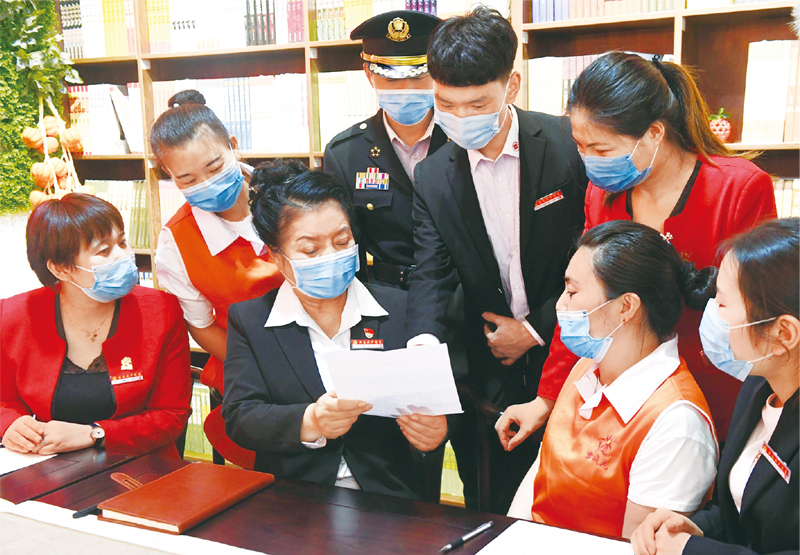 圓方集團(tuán)是河南省鄭州市一家綜合服務(wù)型民營(yíng)企業(yè),現(xiàn)有員工6萬人,其中黨員500多名。2020年,黨的十九大代表、圓方集團(tuán)黨委書記薛榮給習(xí)近平總書記寫信,代表全體職工匯報(bào)了堅(jiān)守本職崗位、積極參與抗疫的情況,表達(dá)了共擔(dān)責(zé)任、共克時(shí)艱的決心。圖為集團(tuán)員工在學(xué)習(xí)習(xí)近平總書記2020年4月30日的回信?!∪珖?guó)黨建研究會(huì)供圖 周甬/攝