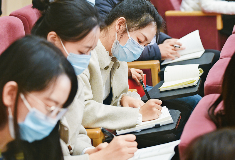 2020年11月7日,中央宣傳部、中央和國(guó)家機(jī)關(guān)工委、教育部、中央軍委政治工作部、中共北京市委在北京舉辦學(xué)習(xí)貫徹黨的十九屆五中全會(huì)精神中央宣講團(tuán)首場(chǎng)報(bào)告會(huì)。在京黨政軍機(jī)關(guān)干部、中央企業(yè)負(fù)責(zé)人、高校師生代表和各界群眾,共700余人參加報(bào)告會(huì)?!⌒氯A社記者 李賀/攝