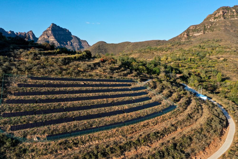 站在左權(quán)縣龍泉鄉(xiāng)連壁村的山頭放眼望去,對(duì)面山嶺上的光伏板漫山遍野,熠熠生輝。“山那邊,看不到的地方還有?!?5歲的村支書郭應(yīng)林說,光伏發(fā)電讓村里2000多畝荒坡荒地變廢為寶,連壁村借此一年增收一百萬元。