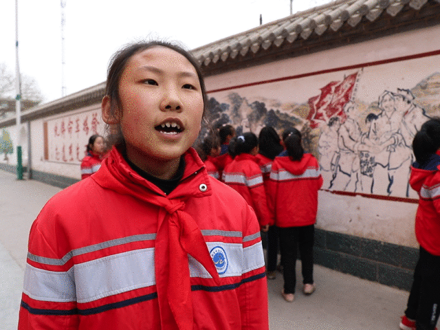 學(xué)校十分重視校園文化建設(shè),小講解員們正在解說的這幾面墻被命名為“紅色故事墻”,采用創(chuàng)作繪畫的形式,分為11個(gè)大板塊,再現(xiàn)了習(xí)仲勛在環(huán)縣艱難而光輝的革命歷程以及紅軍長征途徑環(huán)縣時(shí)與環(huán)縣人民魚水情深的場(chǎng)景。