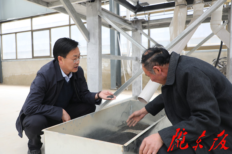 圖為 戶鋒在恒烽中藥材加工廠查看黃芪種子