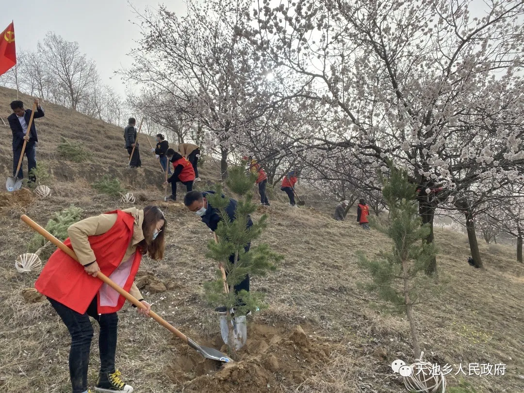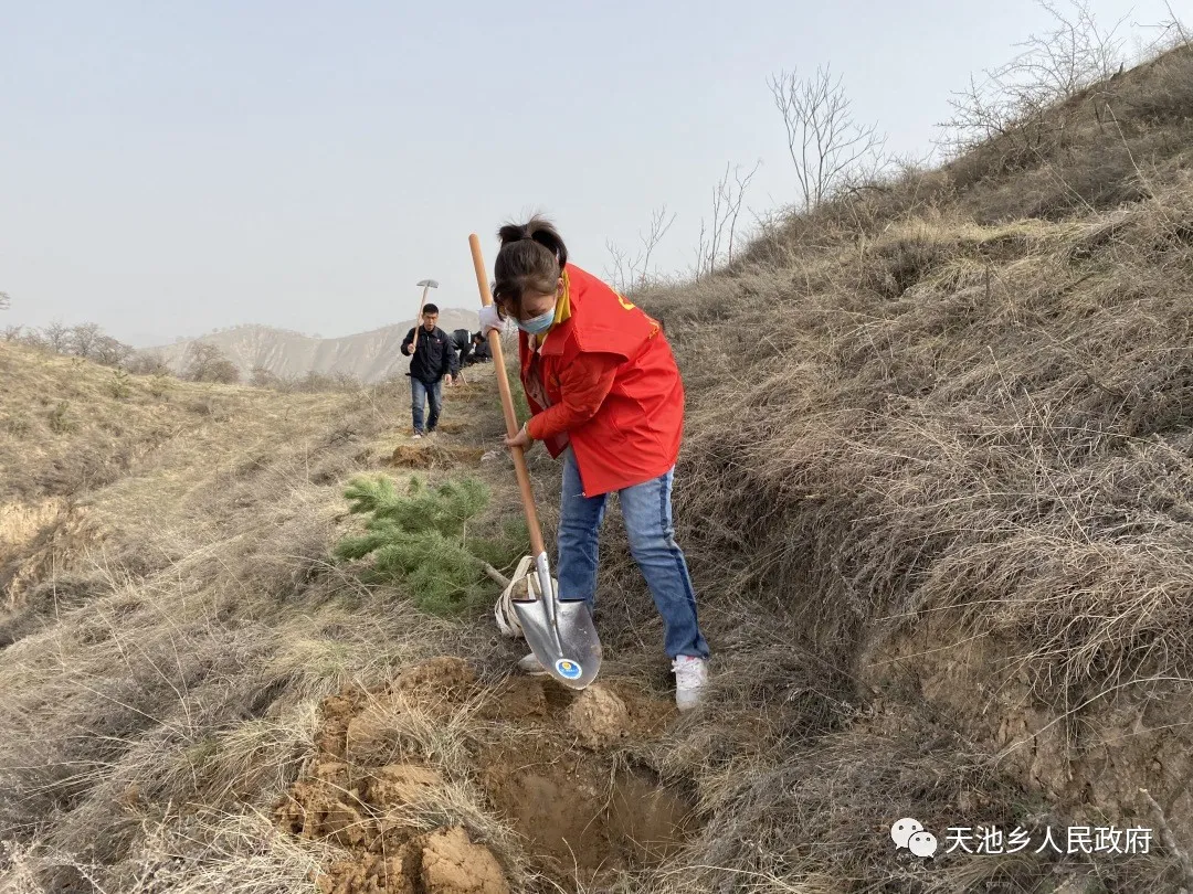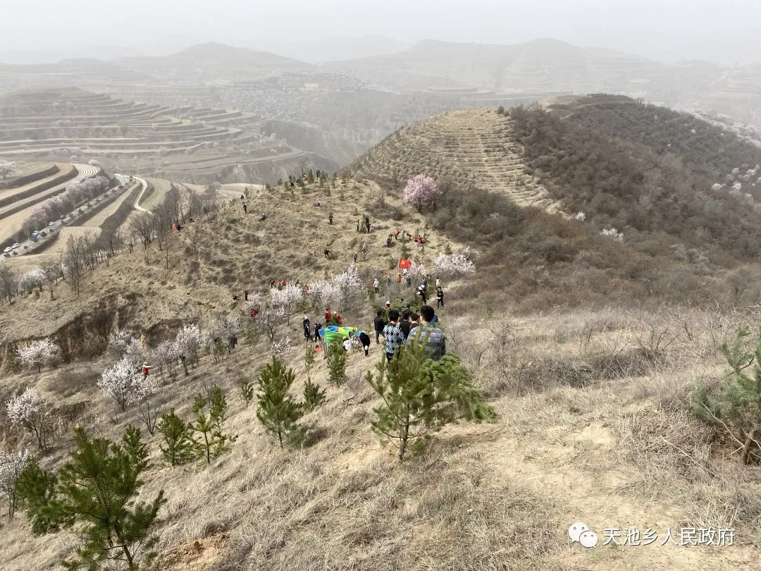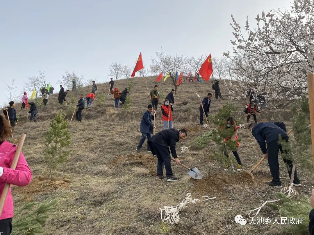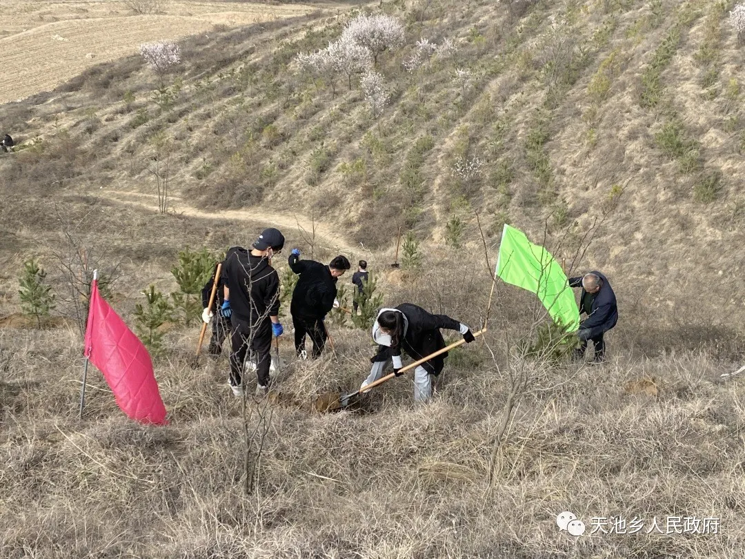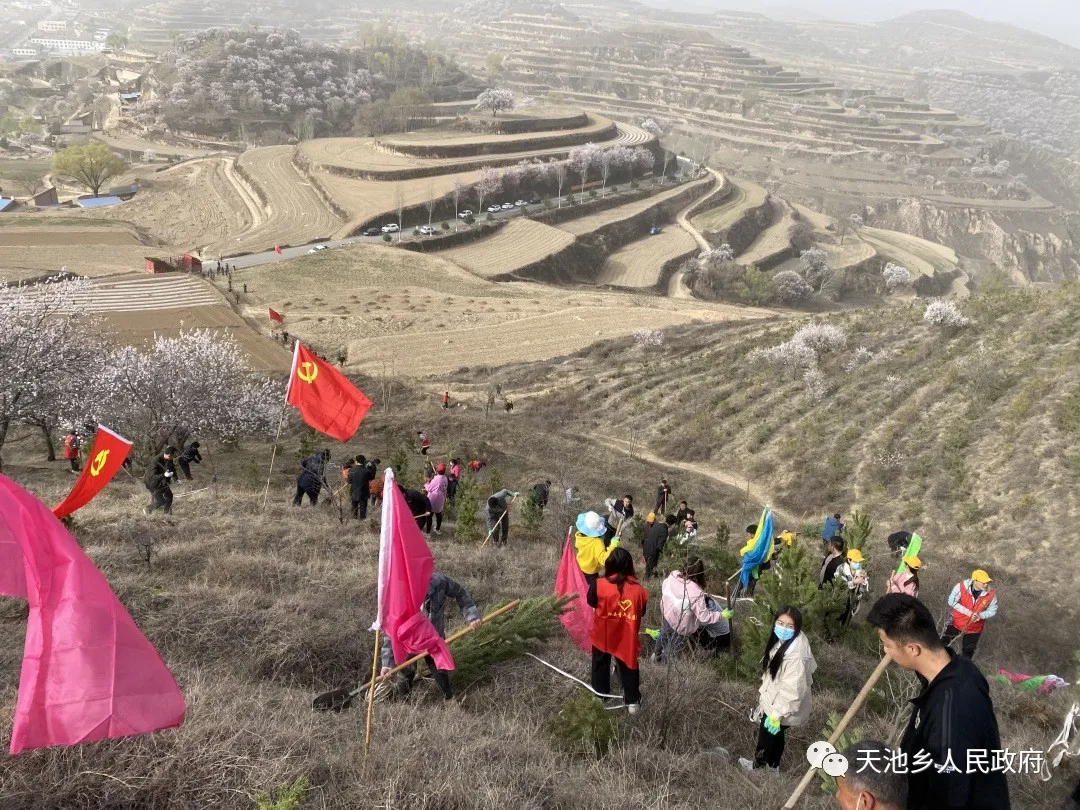 慶陽(yáng)網(wǎng)訊 (通訊員 楊芷塵)黨旗迎風(fēng)展,青山增新綠。3月29日上午,天池鄉(xiāng)開展“學(xué)黨史、感黨恩、植新綠、美家園”義務(wù)植樹周活動(dòng),結(jié)合黨史學(xué)習(xí)教育活動(dòng),全面拉開了“一村萬樹”工程序幕。全鄉(xiāng)黨員干部群眾齊上陣,共計(jì)400余人參與了活動(dòng)。