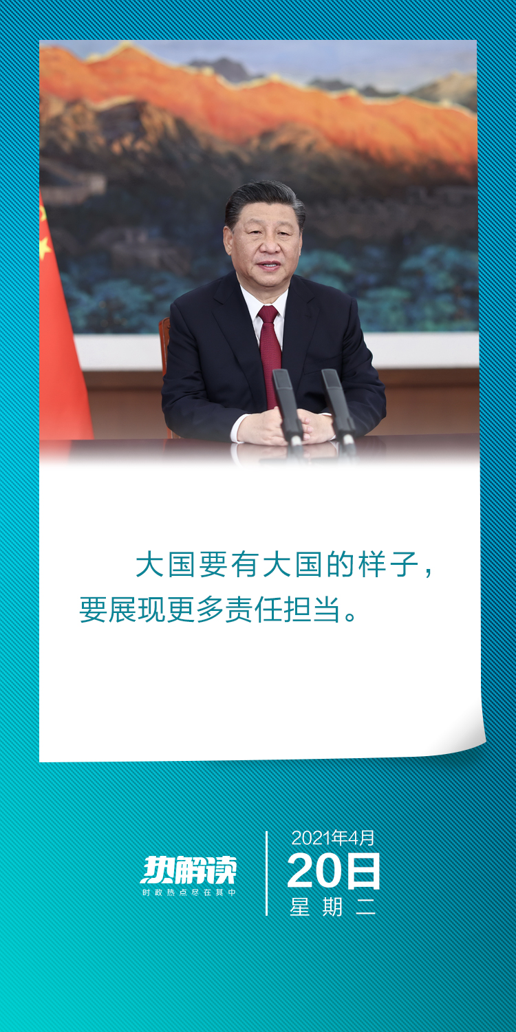 習近平主席以視頻方式出席開幕式并發(fā)表主旨演講,一句“大國要有大國的樣子,要展現(xiàn)更多責任擔當”引發(fā)共鳴。
