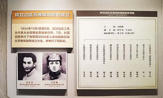 南梁革命紀念館展板資料圖:陜甘邊區(qū)蘇維埃政府的成立。隴東報全媒體記者李卿攝