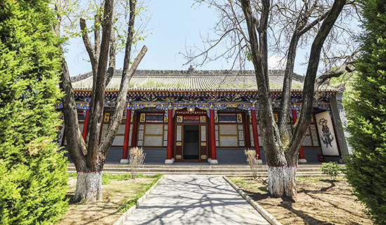“荔園堡古城內(nèi)的關帝廟就是當時召開大會的老爺廟,關帝廟門楣上橫書著的‘陜甘邊區(qū)蘇維埃政府舊址’是習仲勛同志在建館時親筆題寫。正殿門前那兩棵郁郁蔥蔥的桑樹,是1934年春劉志丹和習仲勛同志親手栽植的。歲月更迭,這兩棵桑樹見證了戰(zhàn)火硝煙里結(jié)下的永不退變的革命友誼和先輩們無悔奮斗的遠大理想?!眲曾P介紹說。