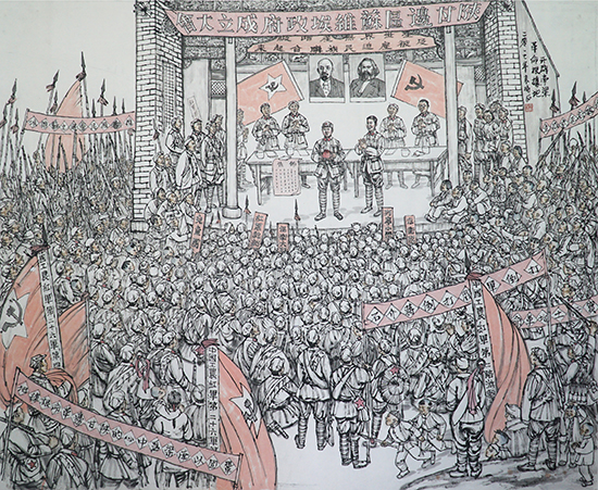 陜甘邊區(qū)蘇維埃政府成立大會。袁鵬飛繪