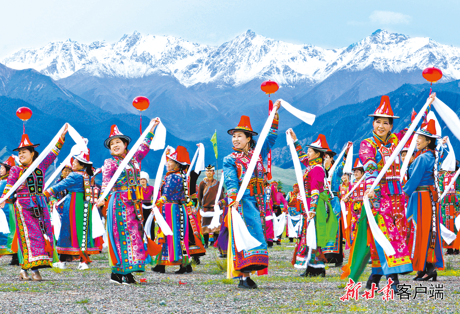 祁連山下,裕固族群眾載歌載舞獻(xiàn)禮中國(guó)共產(chǎn)黨百年華誕。新甘肅·甘肅日?qǐng)?bào)通訊員 王將