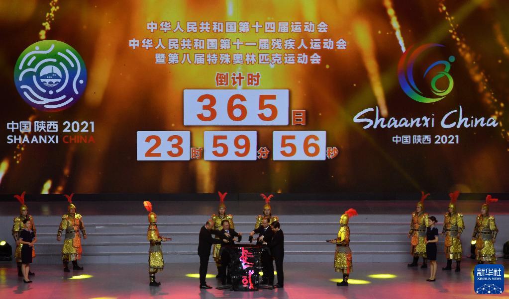 2020年9月15日,第十四屆全運(yùn)會(huì)迎來倒計(jì)時(shí)一周年。這是9月15日在西安奧體中心體育館拍攝的中華人民共和國第十四屆運(yùn)動(dòng)會(huì)倒計(jì)時(shí)一周年活動(dòng)現(xiàn)場(chǎng)。新華社記者李一博攝