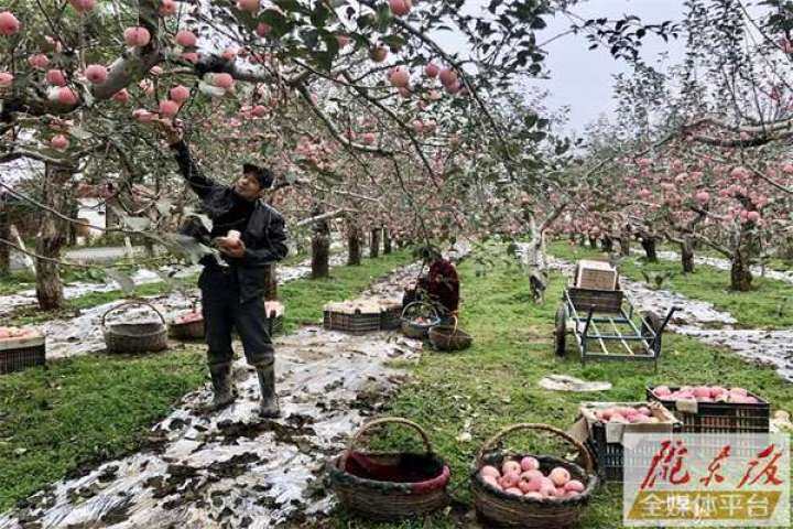 西峰區(qū)什社鄉(xiāng)慶豐村,村民收獲蘋果。隴東報全媒體記者 徐雅荷 攝