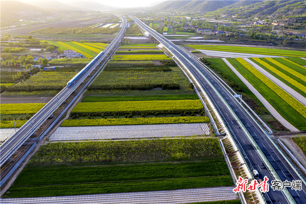 銀西高鐵動車馳騁董志塬之上。新甘肅·甘肅日報(bào)通訊員 王世軍