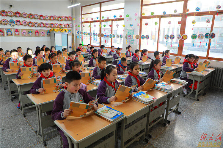 ↑慶陽(yáng)市東方紅小學(xué)的學(xué)生們正在朗讀課文。