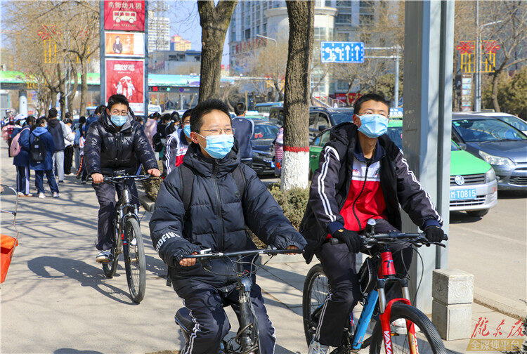 ↑騎著單車的中學(xué)生們?cè)诨丶业穆飞稀?/p>