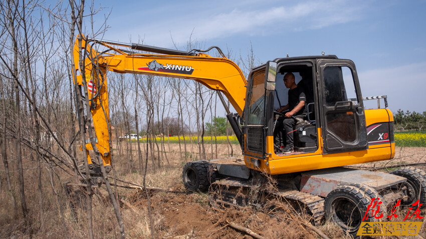↑挖掘機(jī)刨出埋在地下的根須,平整土地,為接下來的糧食生產(chǎn)做好準(zhǔn)備。