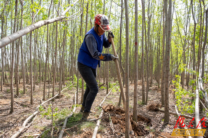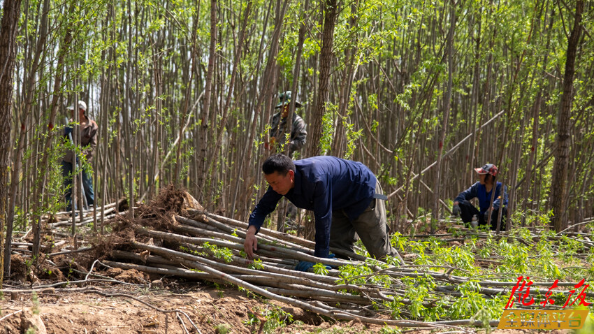 ↑溫泉鎮(zhèn)湫溝村村民清退苗木。
