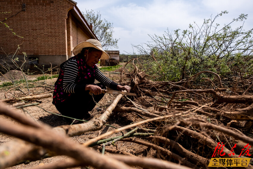 4月8日,西峰區(qū)溫泉鎮(zhèn)湫溝村村民們正在清理自家育種的各類苗木,對占用耕地的苗木進(jìn)行清退。湫溝村目前有良田育種各類苗木600余畝,已清退苗木70余畝,剩余苗木預(yù)計今年6月底清退完成。