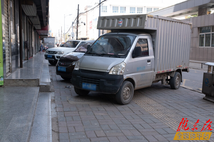 ↑向陽巷,機動車停放在人行道上,占用盲道。