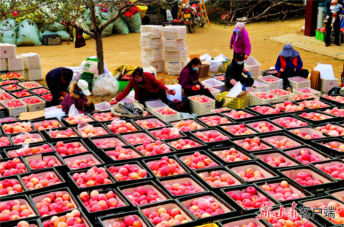 慶城縣桐川鎮(zhèn)小塬子村果農(nóng)采裝蘋果。新甘肅·甘肅日?qǐng)?bào)通訊員 李泳宏