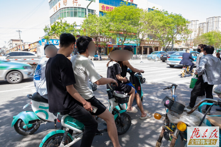 ↑東大街,限乘一人的共享電動車超載。