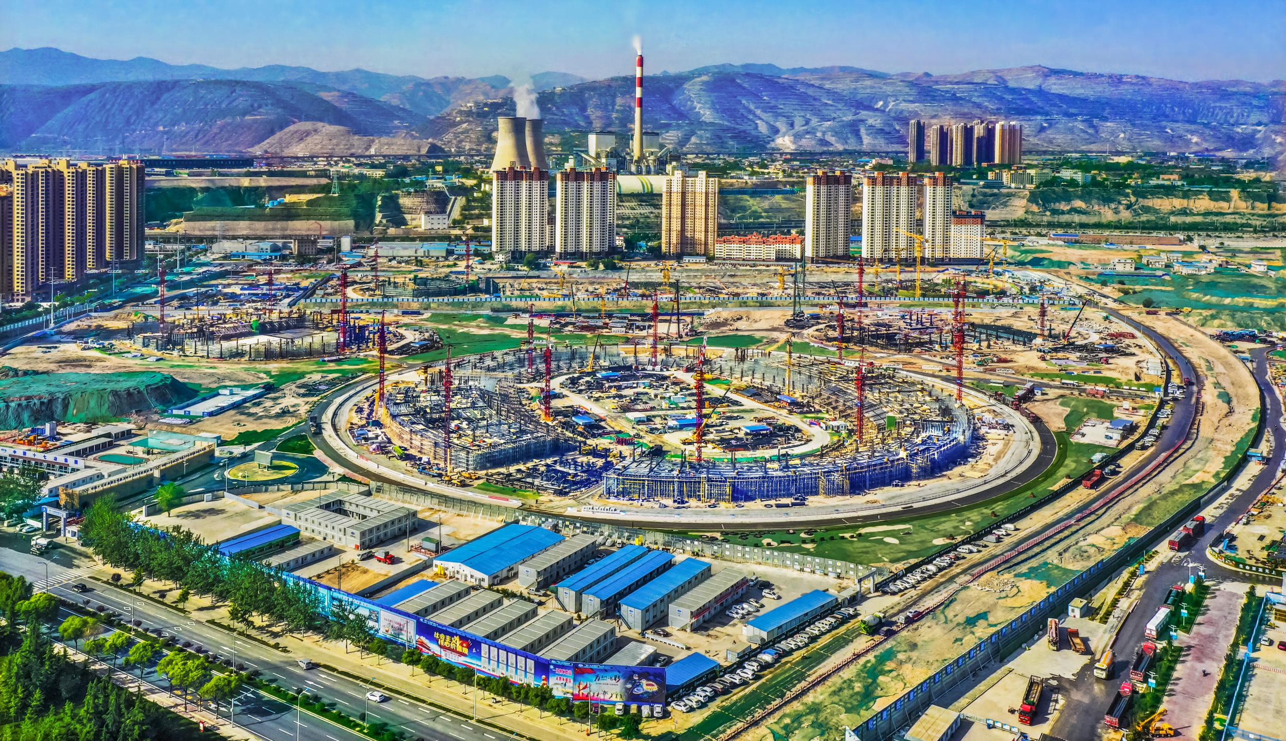 ▲2021年10月蘭州奧體中心建設(shè)現(xiàn)場(chǎng)