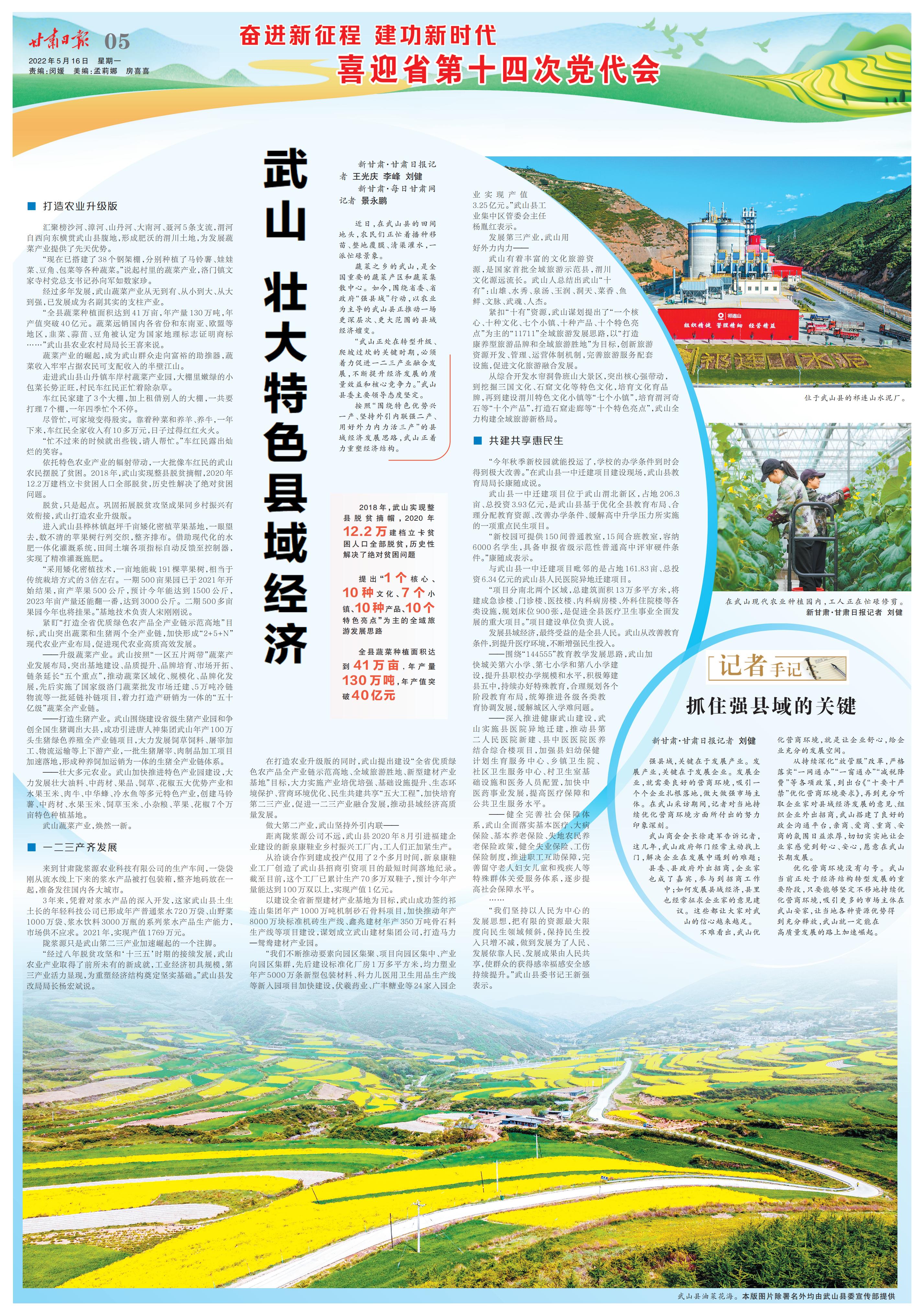 蔬菜之鄉(xiāng)的武山,是全國重要的蔬菜產(chǎn)區(qū)和蔬菜集散中心。如今,圍繞省委、省政府“強縣域”行動,以農(nóng)業(yè)為主導的武山縣正推動一場更深層次、更大范圍的縣域經(jīng)濟嬗變。