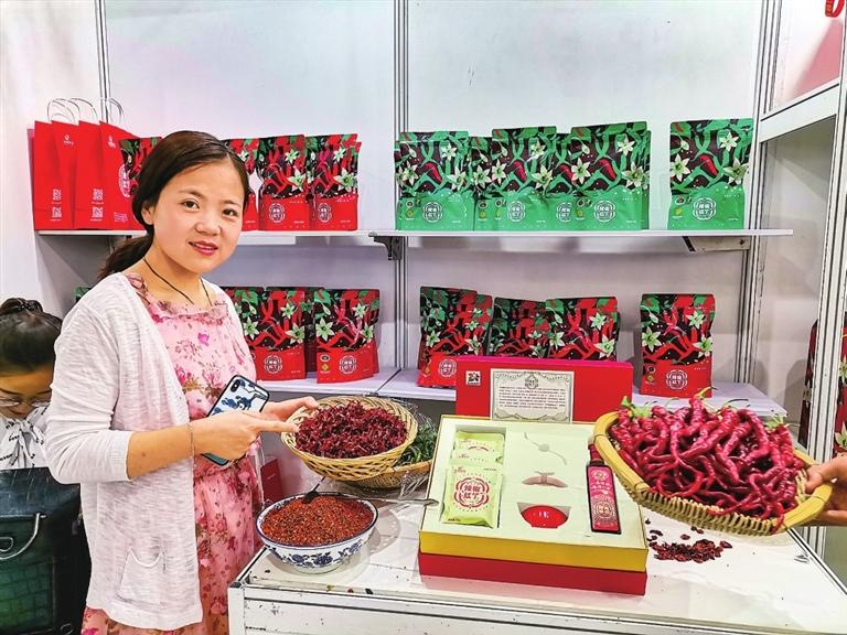 “甘味”農(nóng)產(chǎn)品展銷館里,工作人員在推介甘谷辣椒。