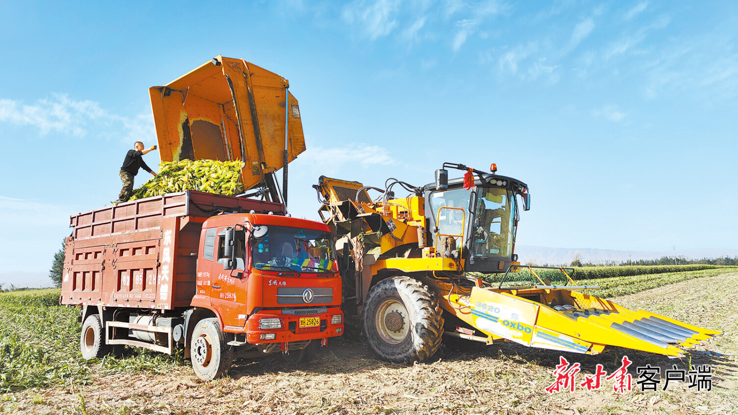 武威市黃羊河農(nóng)場(chǎng)機(jī)械化收獲甜糯玉米。新甘肅·甘肅日?qǐng)?bào)記者 王朝霞
