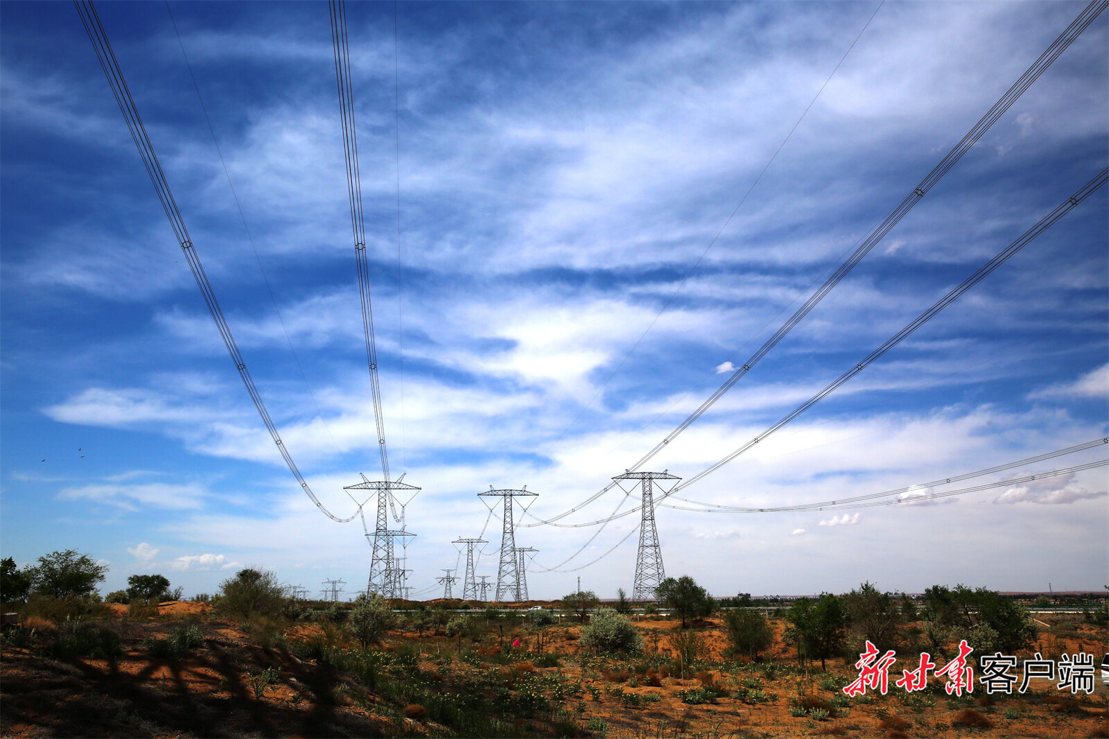 “西電東送”工程特高壓輸電線路。新甘肅·甘肅日報(bào)通訊員 尹嵐