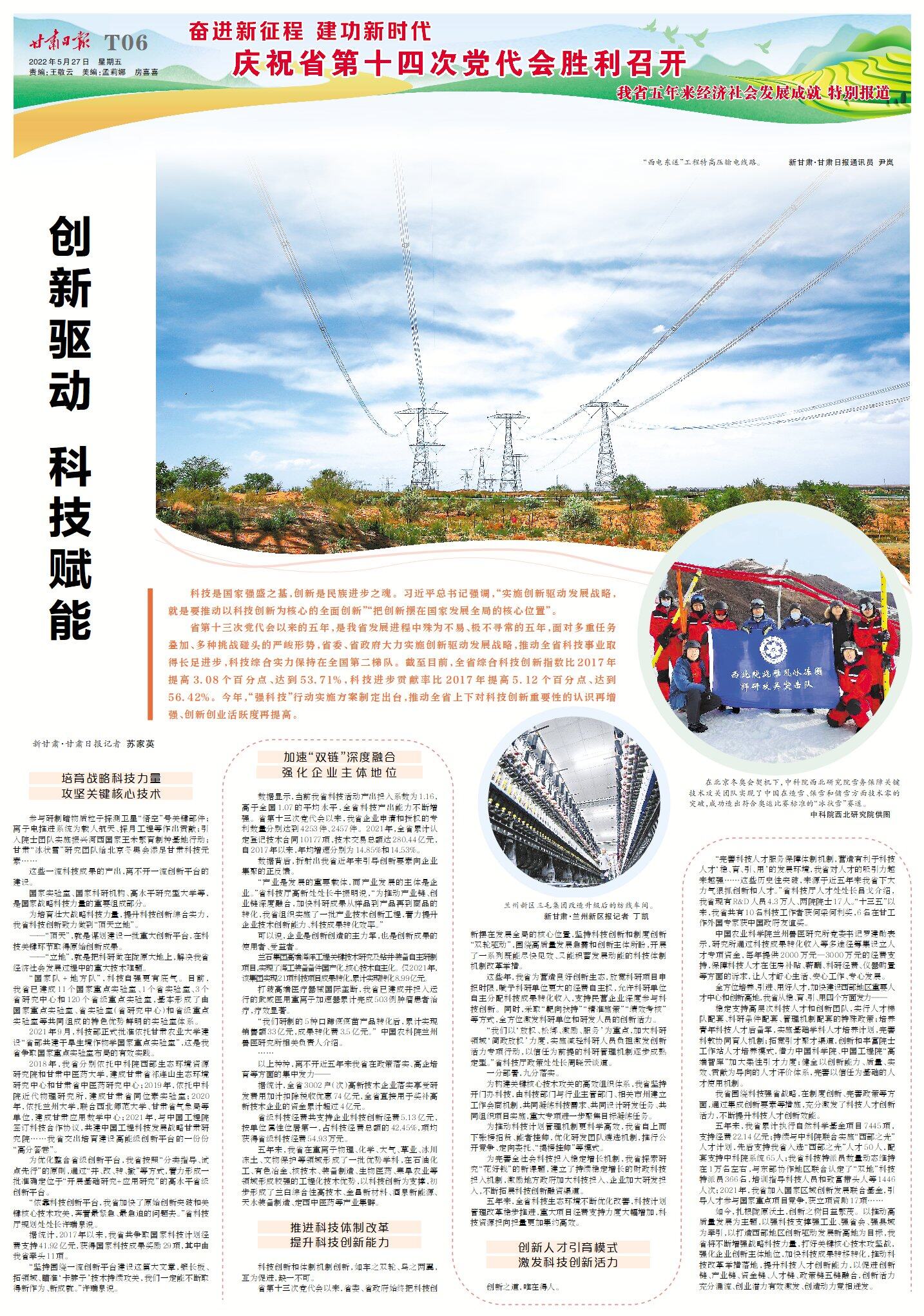 參與研制暗物質(zhì)粒子探測衛(wèi)星“悟空”號(hào)關(guān)鍵部件;離子電推進(jìn)系統(tǒng)為載人航天、探月工程等作出貢獻(xiàn);引入院士團(tuán)隊(duì)實(shí)施振興河西國家玉米繁育制種基地行動(dòng);甘肅“冰狀雪”研究團(tuán)隊(duì)給北京冬奧會(huì)添足甘肅科技元素……