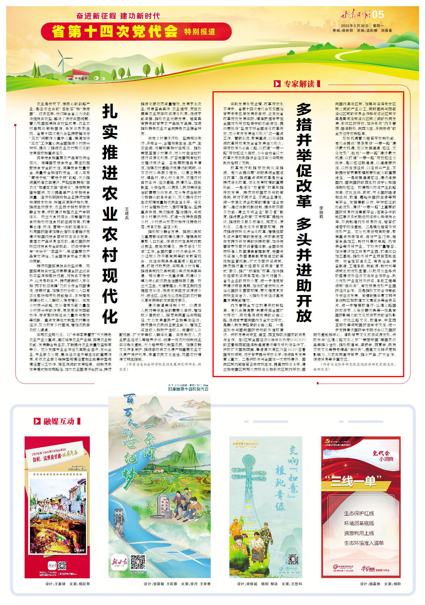實(shí)踐發(fā)展永無止境,改革開放永不停步。省第十四次黨代會(huì)緊緊圍繞甘肅未來五年發(fā)展總目標(biāo),立足我省改革開放發(fā)展實(shí)際,精準(zhǔn)把握甘肅在全國(guó)對(duì)外開放格局中的功能定位,提出要抓好“堅(jiān)定不移全面深化改革開放,充分激發(fā)發(fā)展活力動(dòng)力”這一重點(diǎn)工作。著眼長(zhǎng)遠(yuǎn)、聚焦重點(diǎn),以縱深推進(jìn)改革開放激發(fā)全省發(fā)展活力動(dòng)力,將開放作為必由之路,以打造“一帶一路”開放樞紐為目標(biāo),為今后我省以大改革大開放助推綜合經(jīng)濟(jì)實(shí)力實(shí)現(xiàn)新躍升指明了方向。
