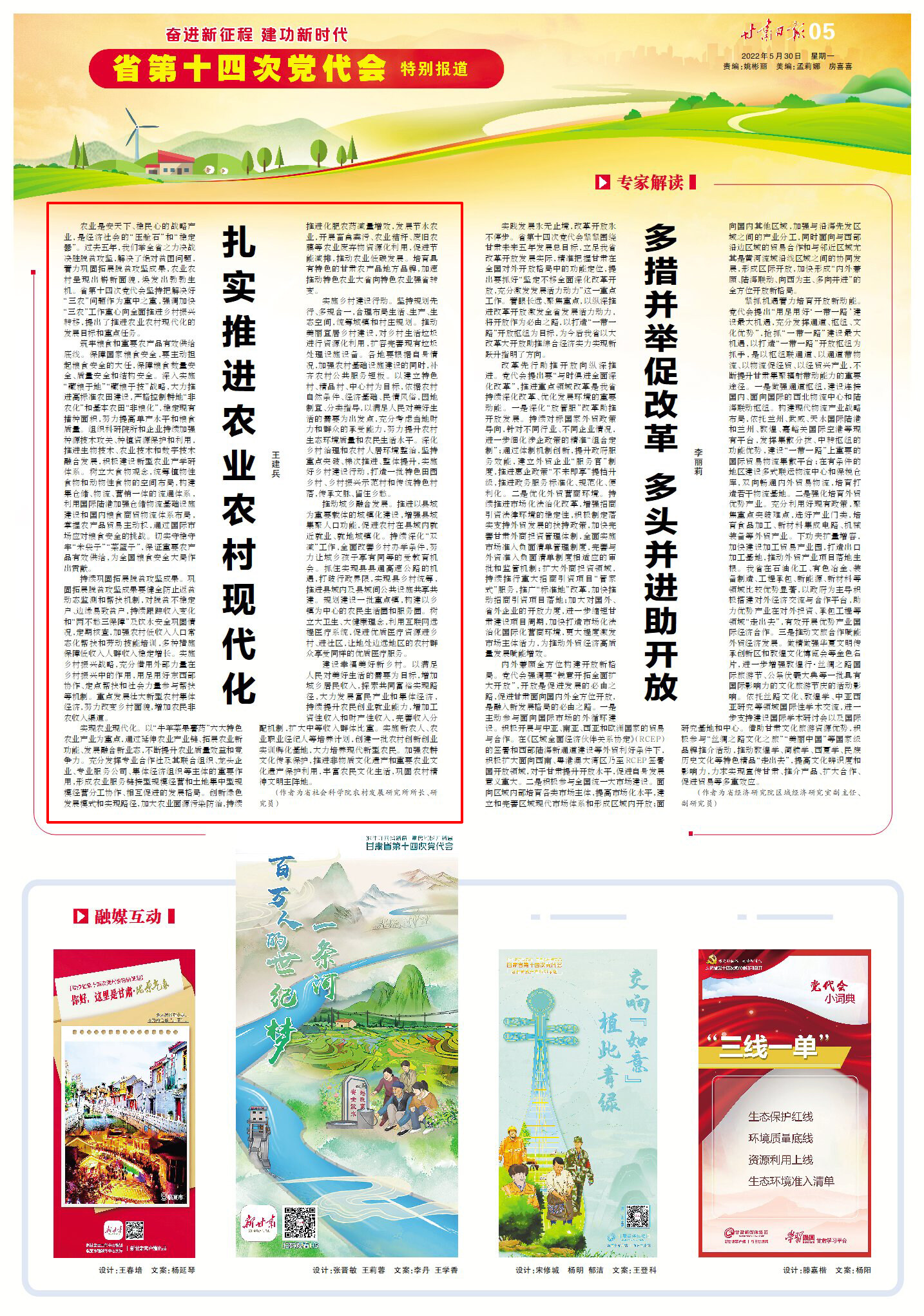 農業(yè)是安天下、穩(wěn)民心的戰(zhàn)略產業(yè),是經濟社會的“壓艙石”和“穩(wěn)定器”。過去五年,我們舉全省之力決戰(zhàn)決勝脫貧攻堅,解決了絕對貧困問題,著力鞏固拓展脫貧攻堅成果,農業(yè)農村呈現(xiàn)出嶄新面貌,煥發(fā)出勃勃生機。省第十四次黨代會堅持把解決好“三農”問題作為重中之重,強調加快“三農”工作重心向全面推進鄉(xiāng)村振興轉移,提出了推進農業(yè)農村現(xiàn)代化的發(fā)展目標和重點任務。